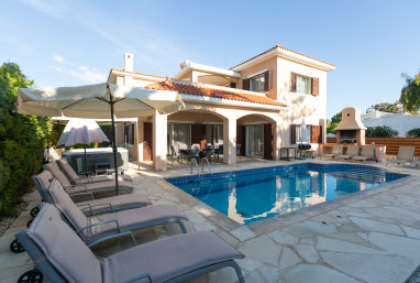 На улице вас ждёт уединённая зона для отдыха: частный бассейн с римскими ступенями (может подогреваться в прохладное время года), роскошные шезлонги, зонтики, джакузи, обеденная зона на свежем воздухе, мангал и теннисный стол. Это идеальное место для семейного отдыха или тёплых вечеров под звёздным небом.