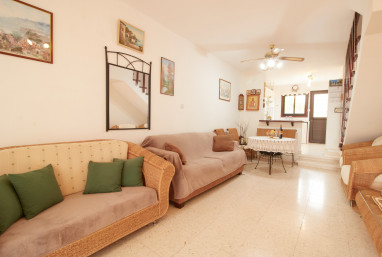 This townhouse is located in a modern complex with shared pool. On the first floor, there is a living room with comfortable sofas, a well-equipped kitchen, toilet room. On the second floor, there are 2 cozy bedrooms, a balcony with an incredible view of the Mediterranean Sea, and a well-equipped bathroom.