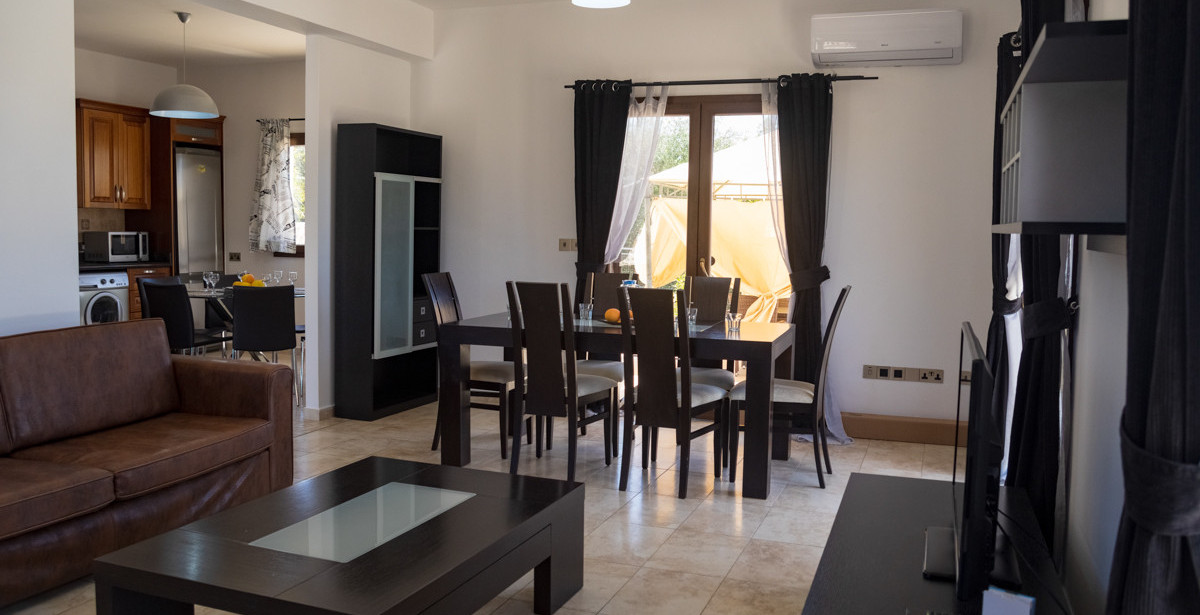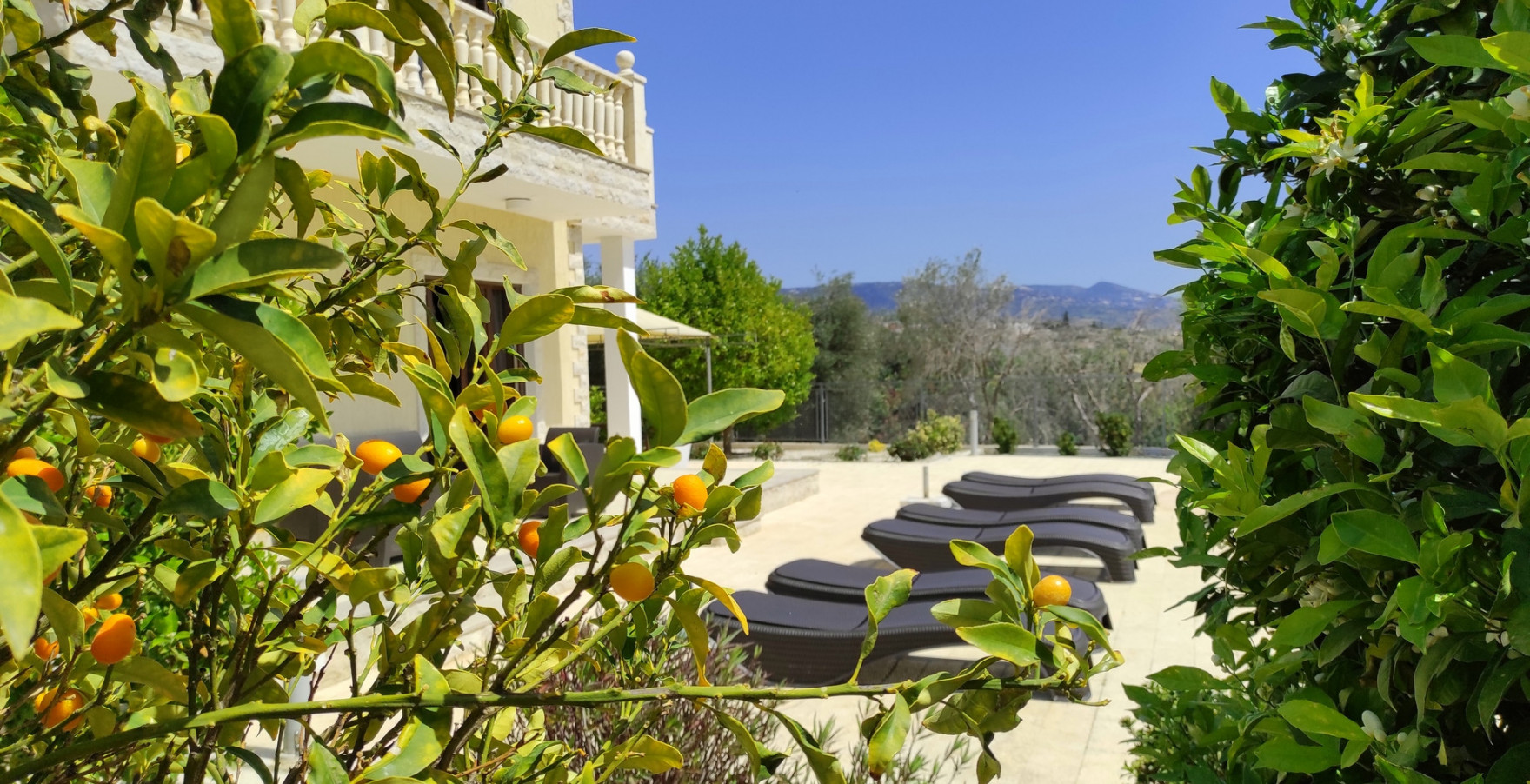 The three-bedroom villa Julia 1 has a twin villa Julia 2, which are located in a separate residence surrounded by green needles, fruiting tangerine, lemon, orange trees, rose bushes and Aloe.