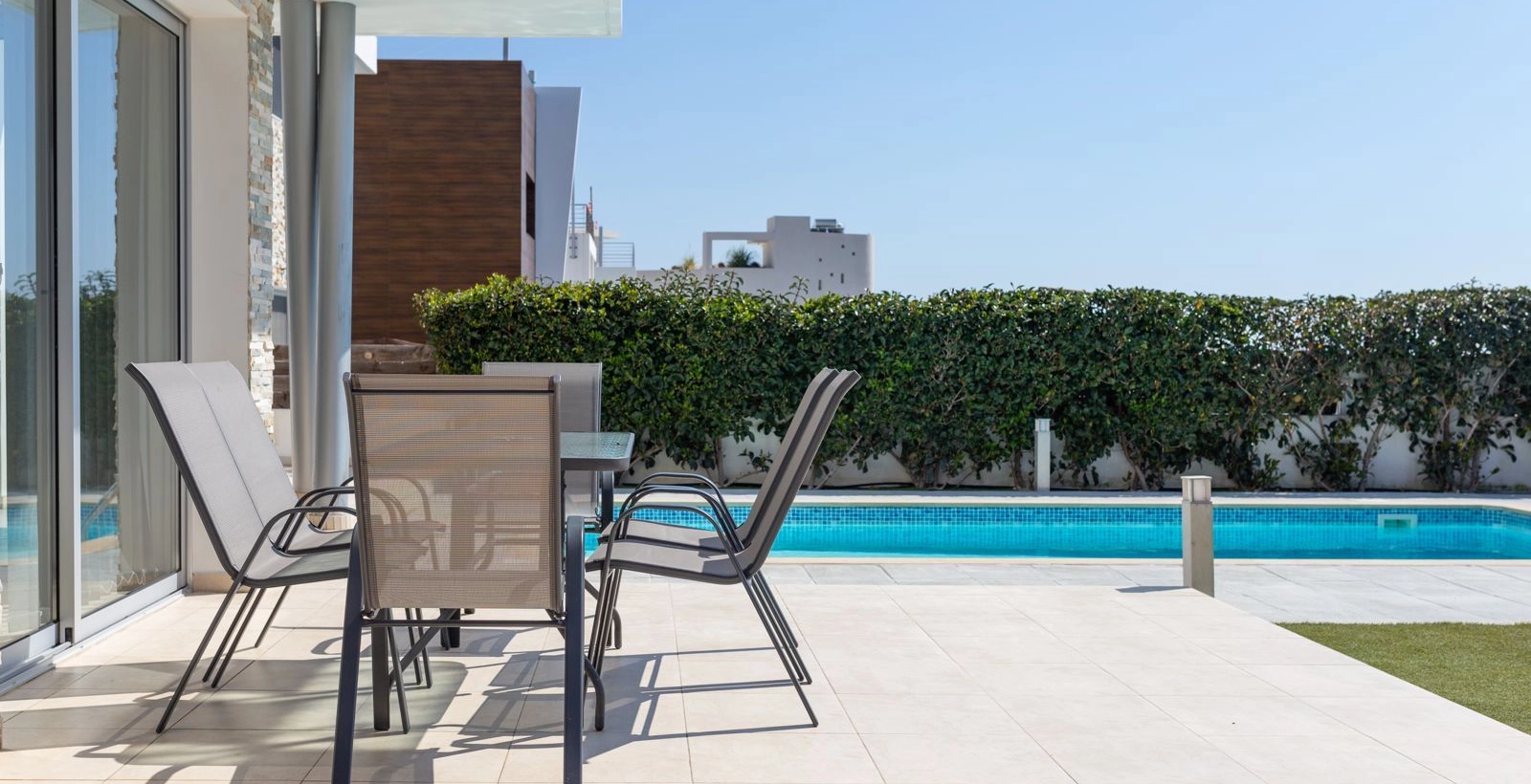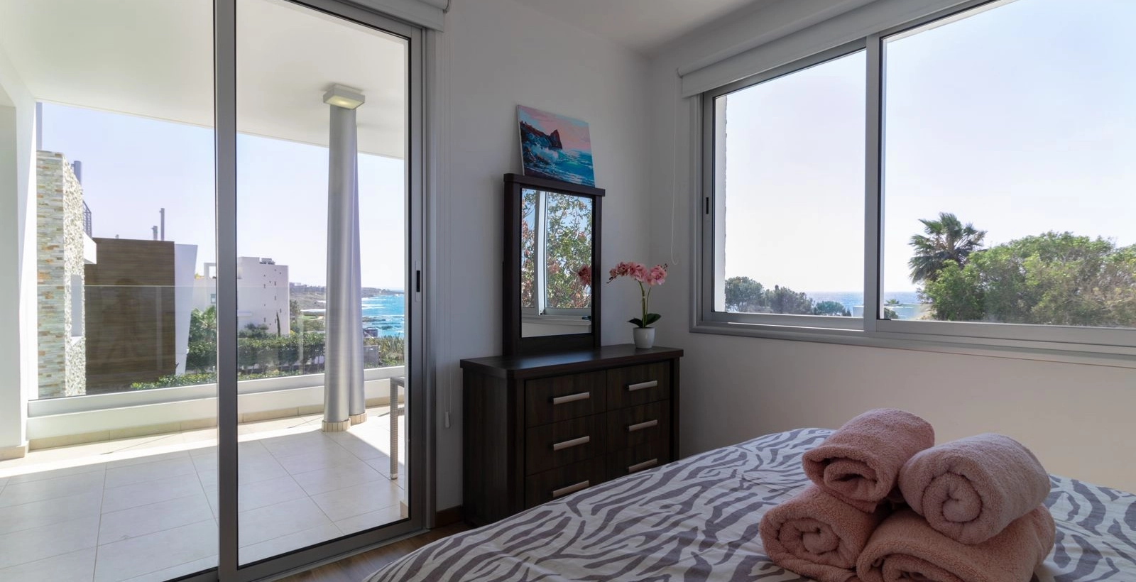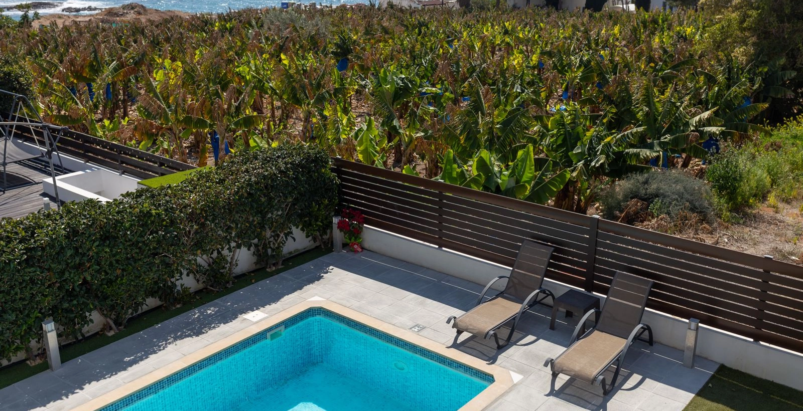 Villa Orchid is allocated right between Paphos and Coral Bay, allowing residents to easily reach both destinations within 10 minutes. Villa is build in a modern style, has a luxurious and brand new interior, spacious living room, modern fully equipped kitchen, open area with a swimming pool, 2,5 bathrooms, and 3 bedrooms, all with stunning views.