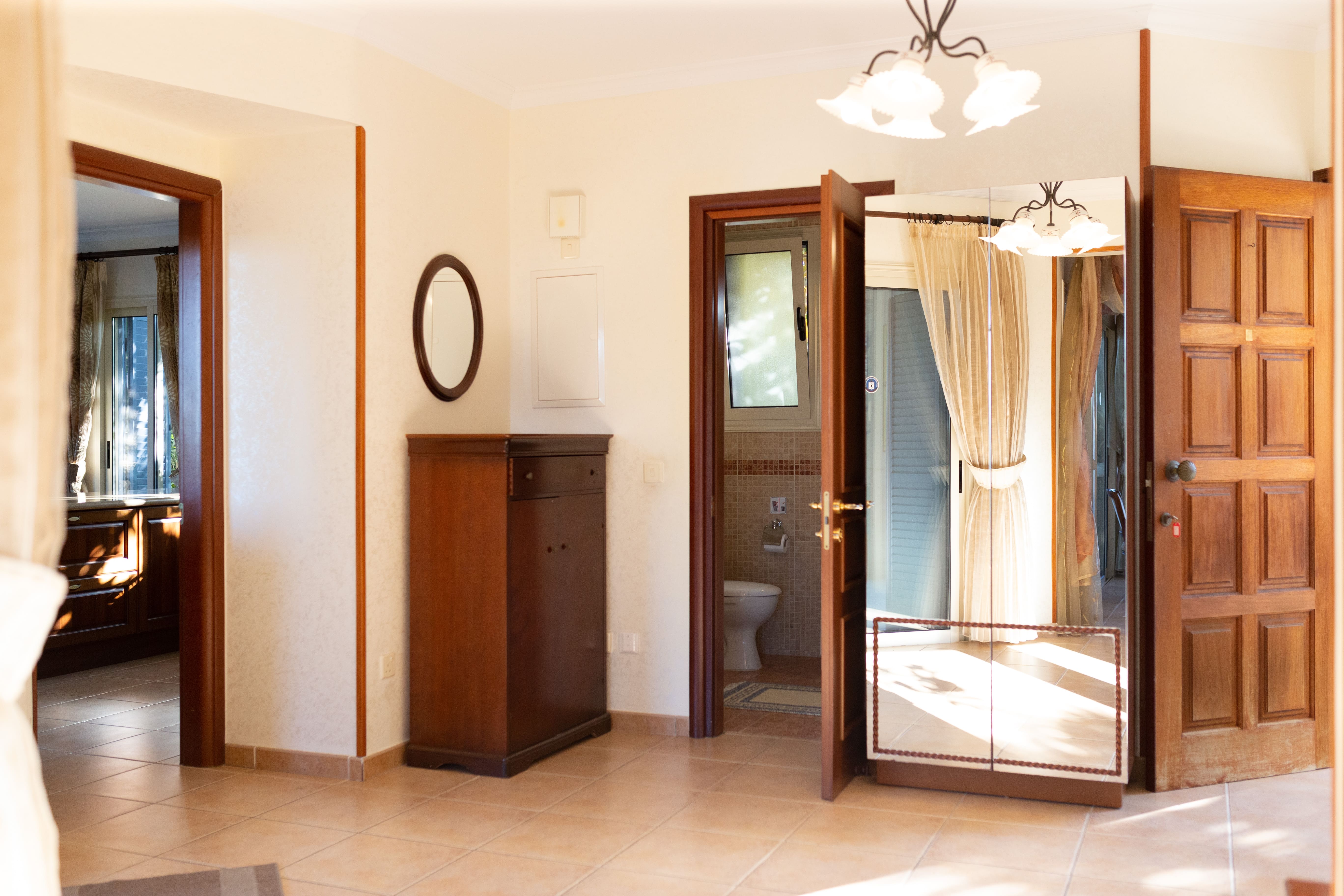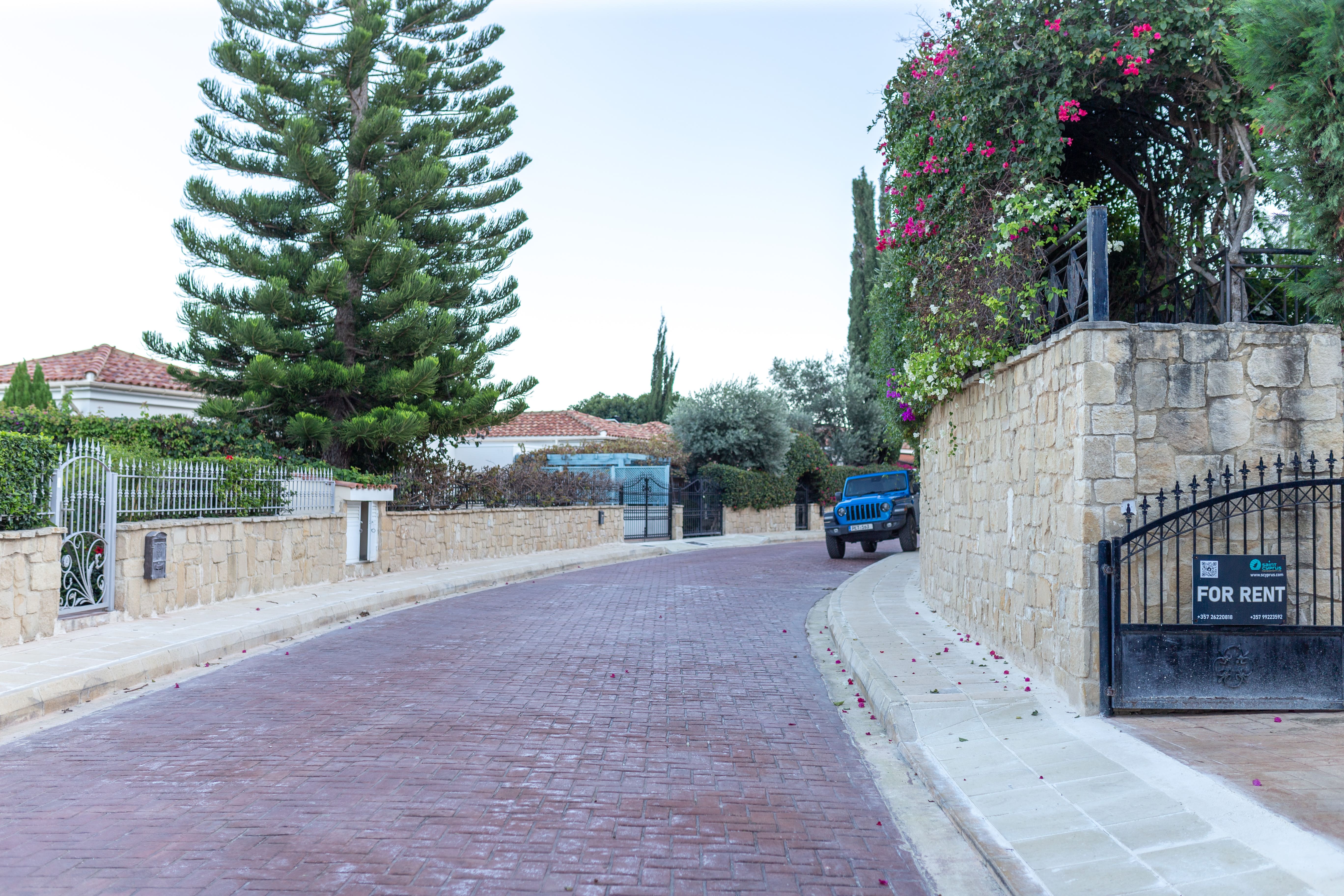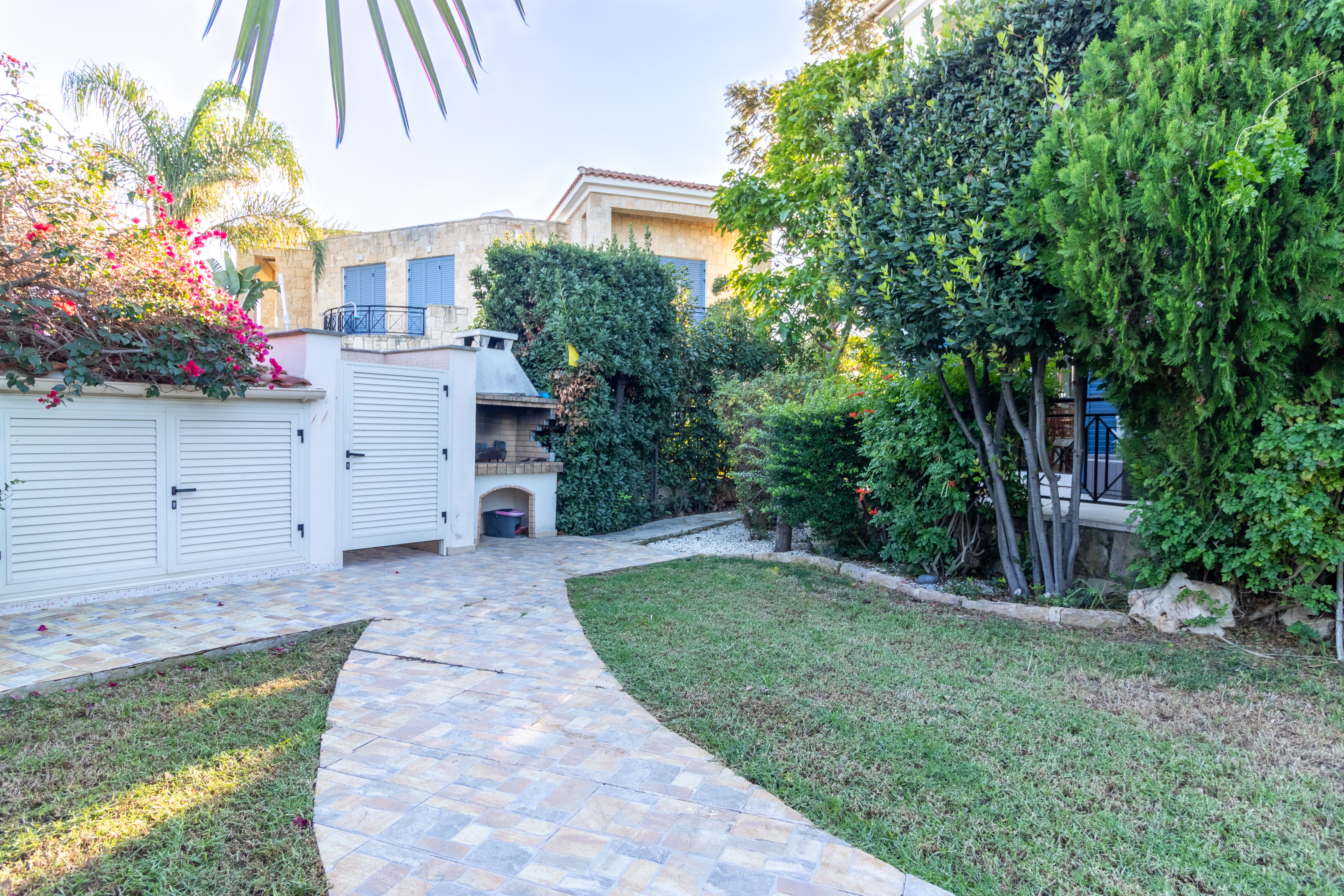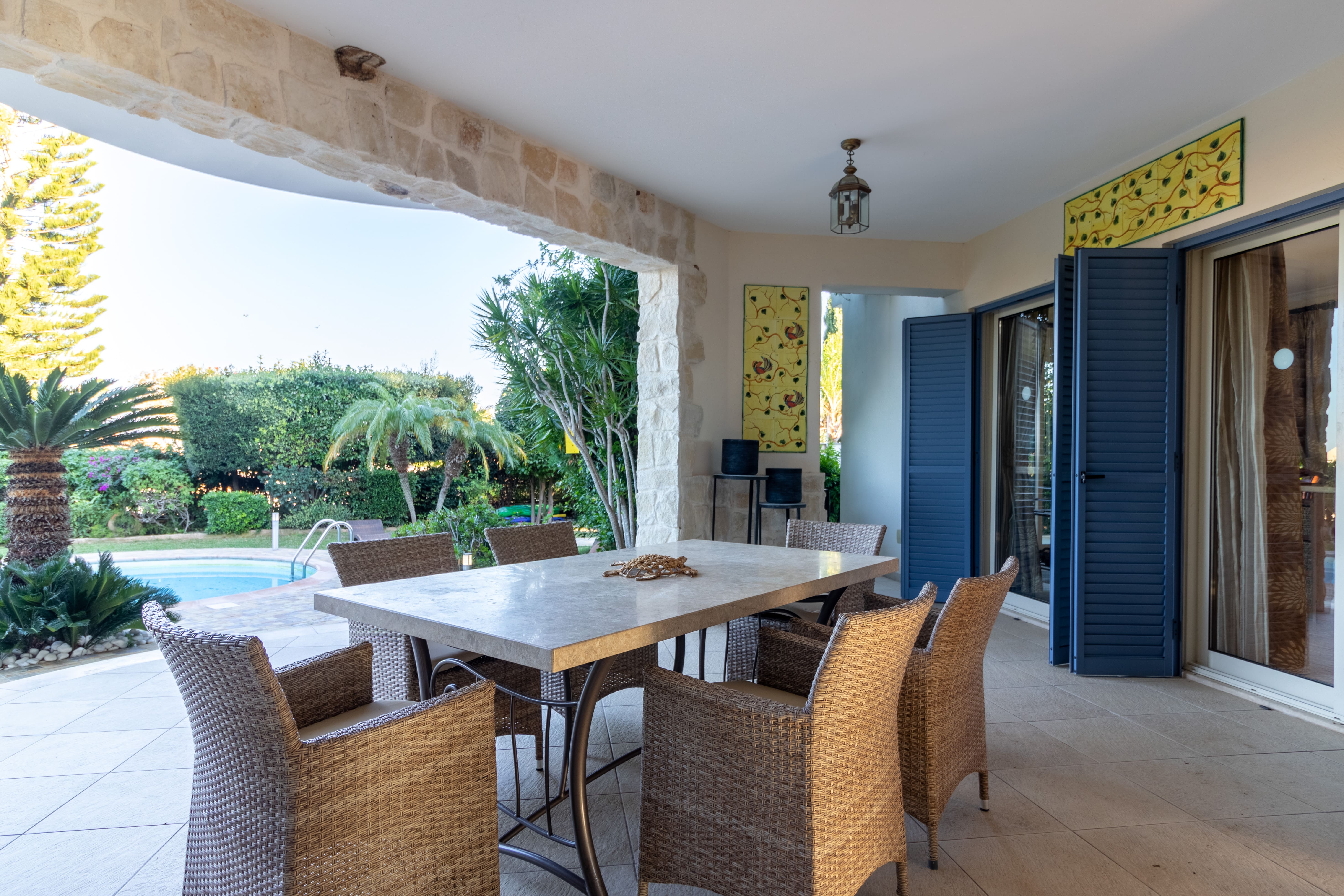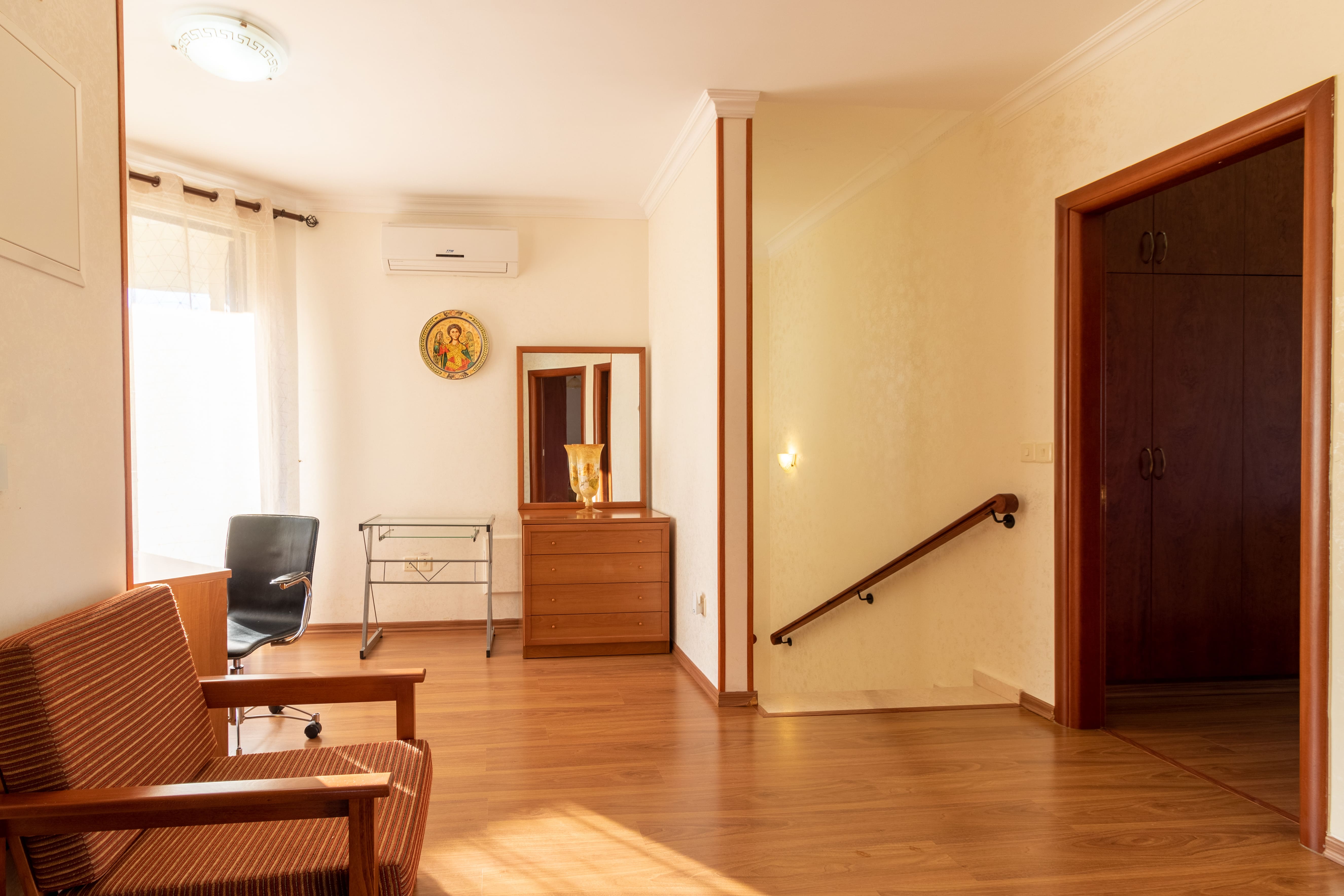 4 bedrooms, 5 bathrooms, a living room with a kitchen, a hall, a billiard room and a green well-groomed garden with a pool heated in winter. The beach and the nearest fish tavern are 3 minutes walk. A 3-minute drive away is the baths of Aphrodite, where tourists come to admire the eucalyptus branches hanging to the ground and the clear water of the goddess’ spring.