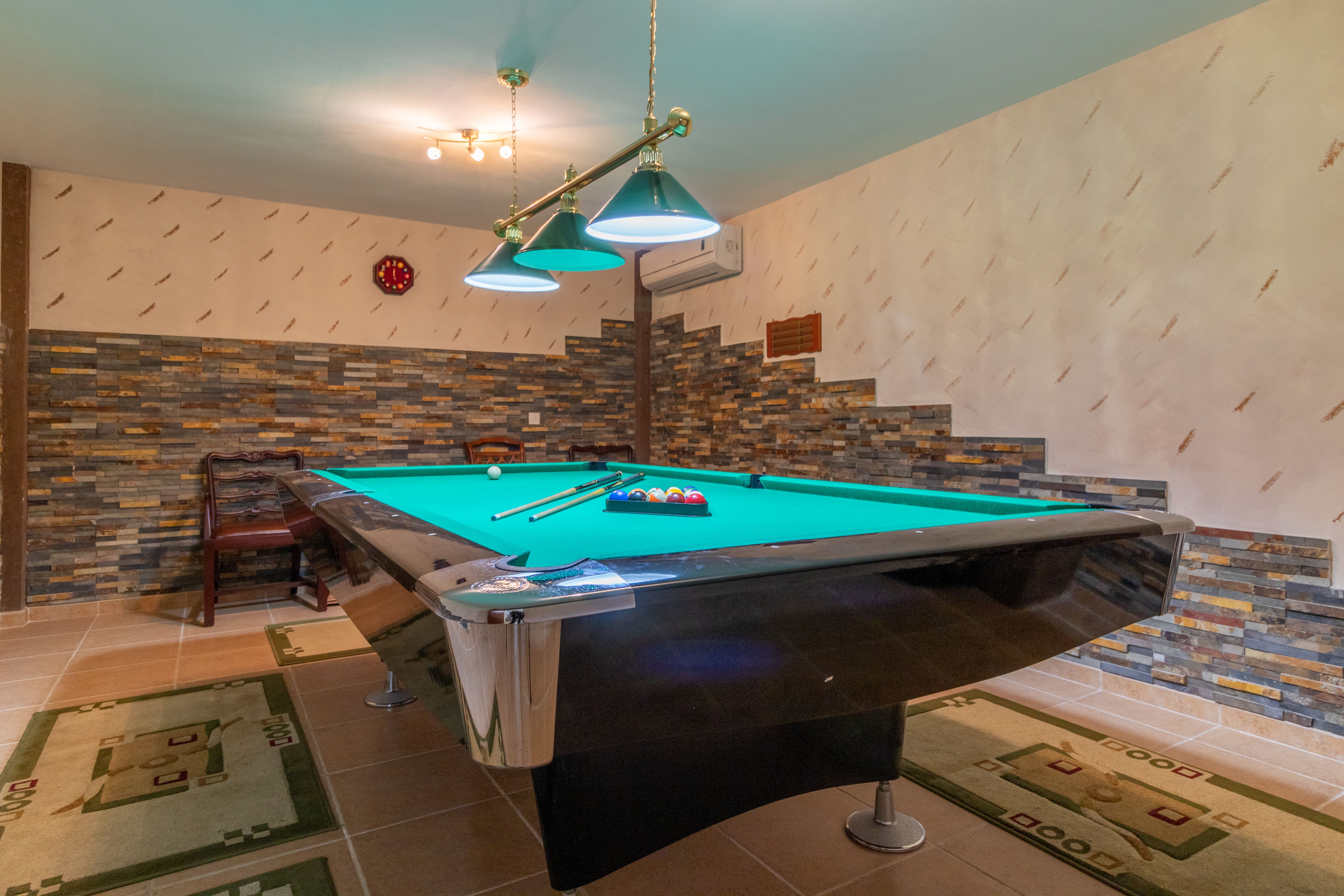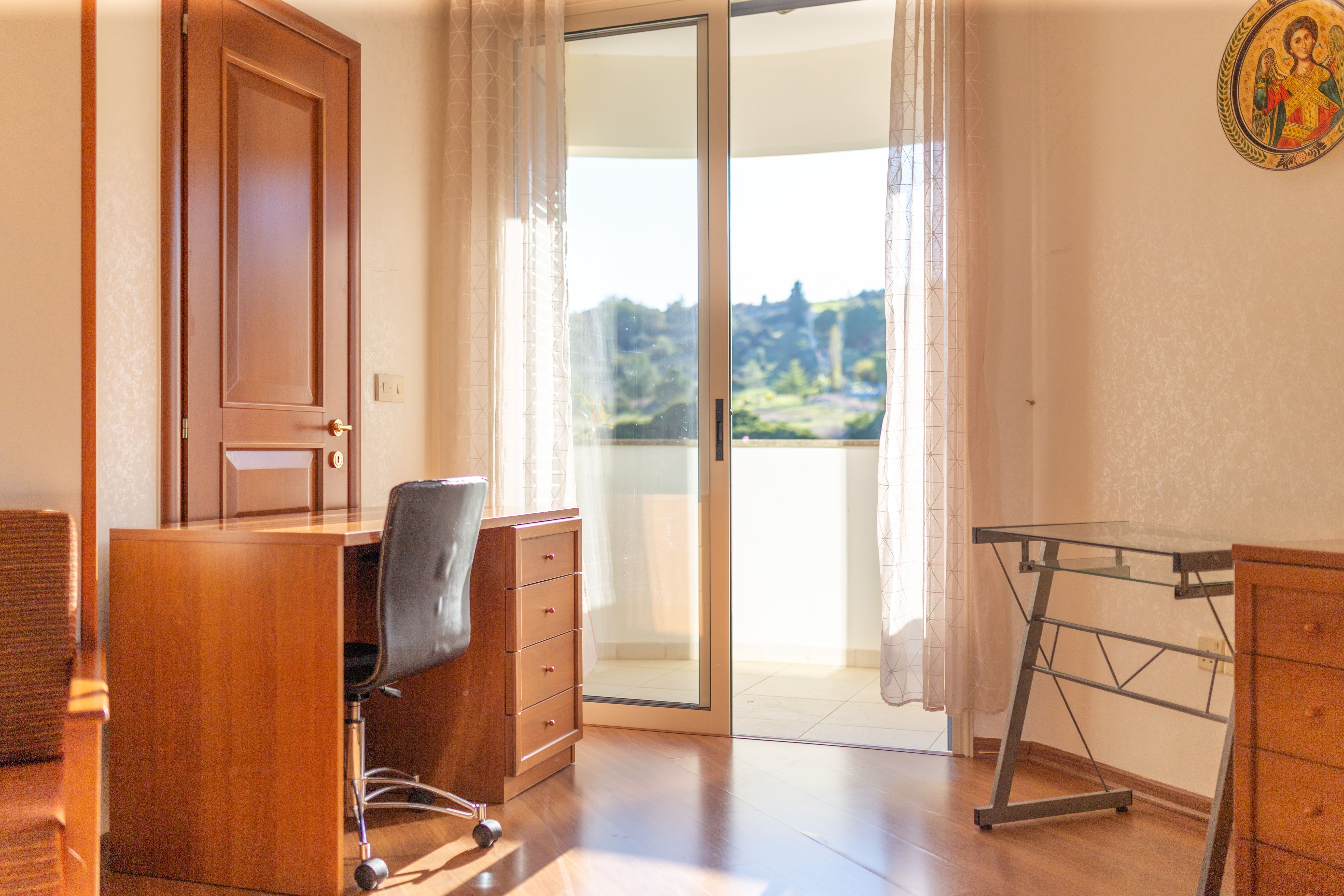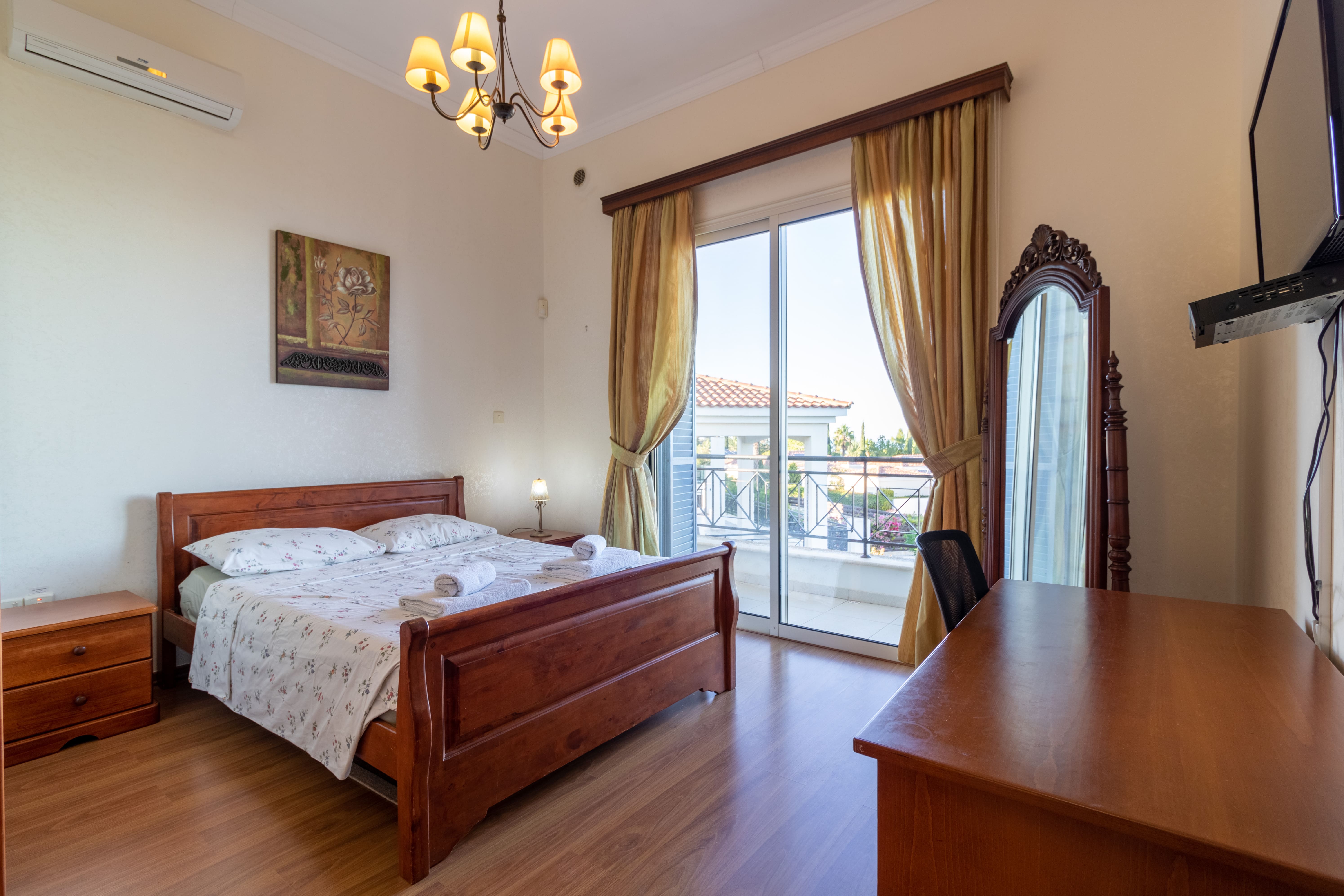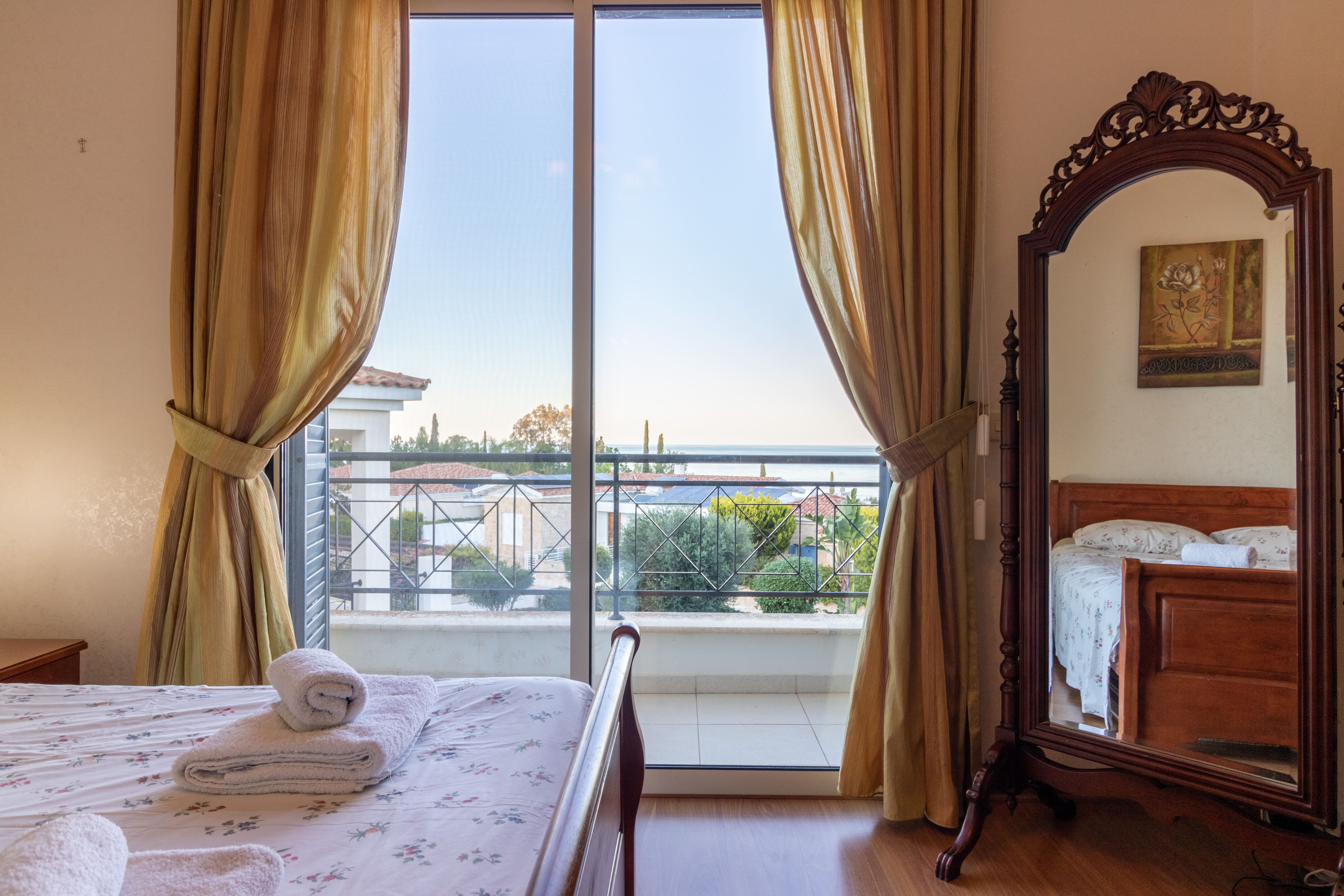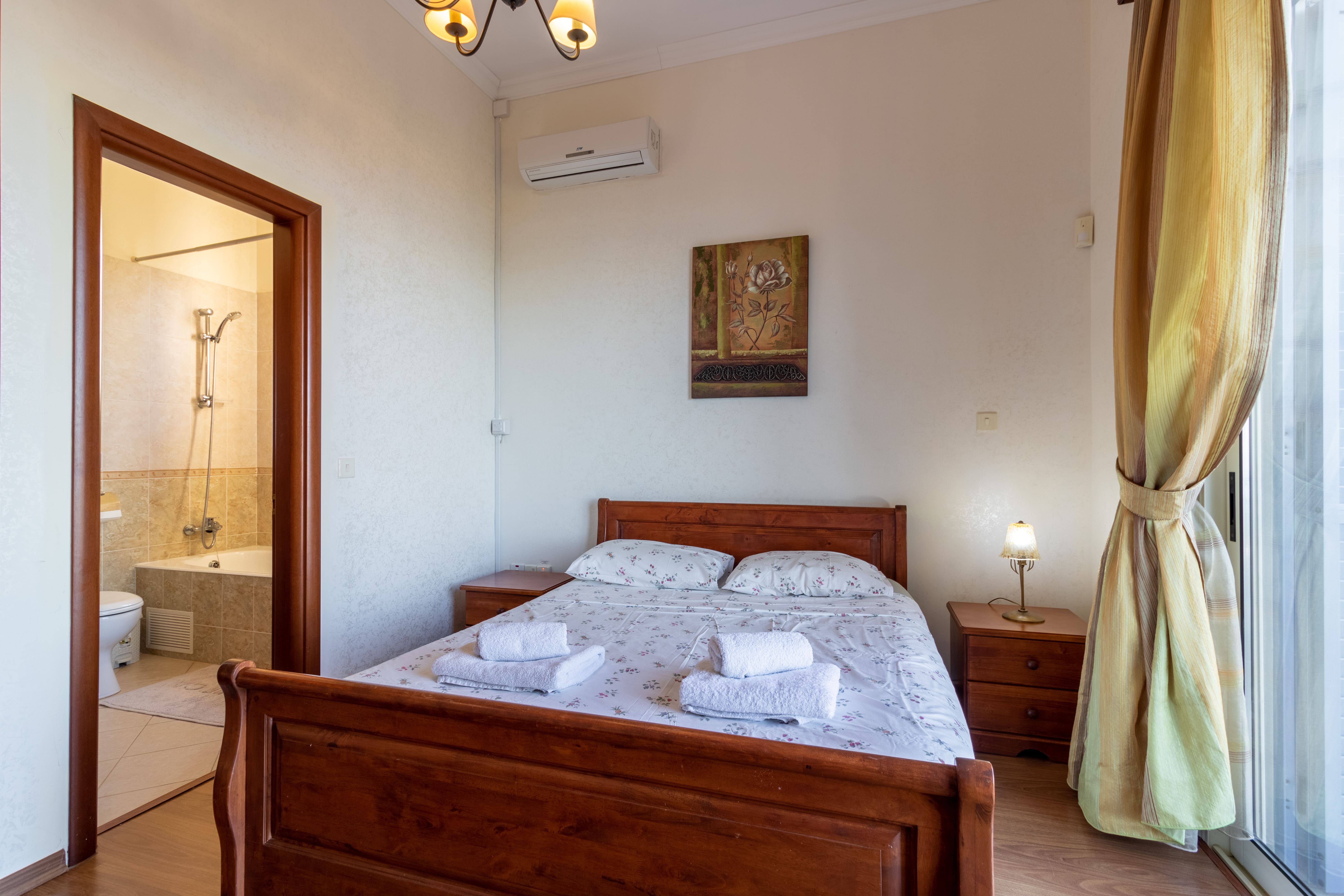 4 bedrooms, 5 bathrooms, a living room with a kitchen, a hall, a billiard room and a green well-groomed garden with a pool heated in winter. The beach and the nearest fish tavern are 3 minutes walk. A 3-minute drive away is the baths of Aphrodite, where tourists come to admire the eucalyptus branches hanging to the ground and the clear water of the goddess’ spring.