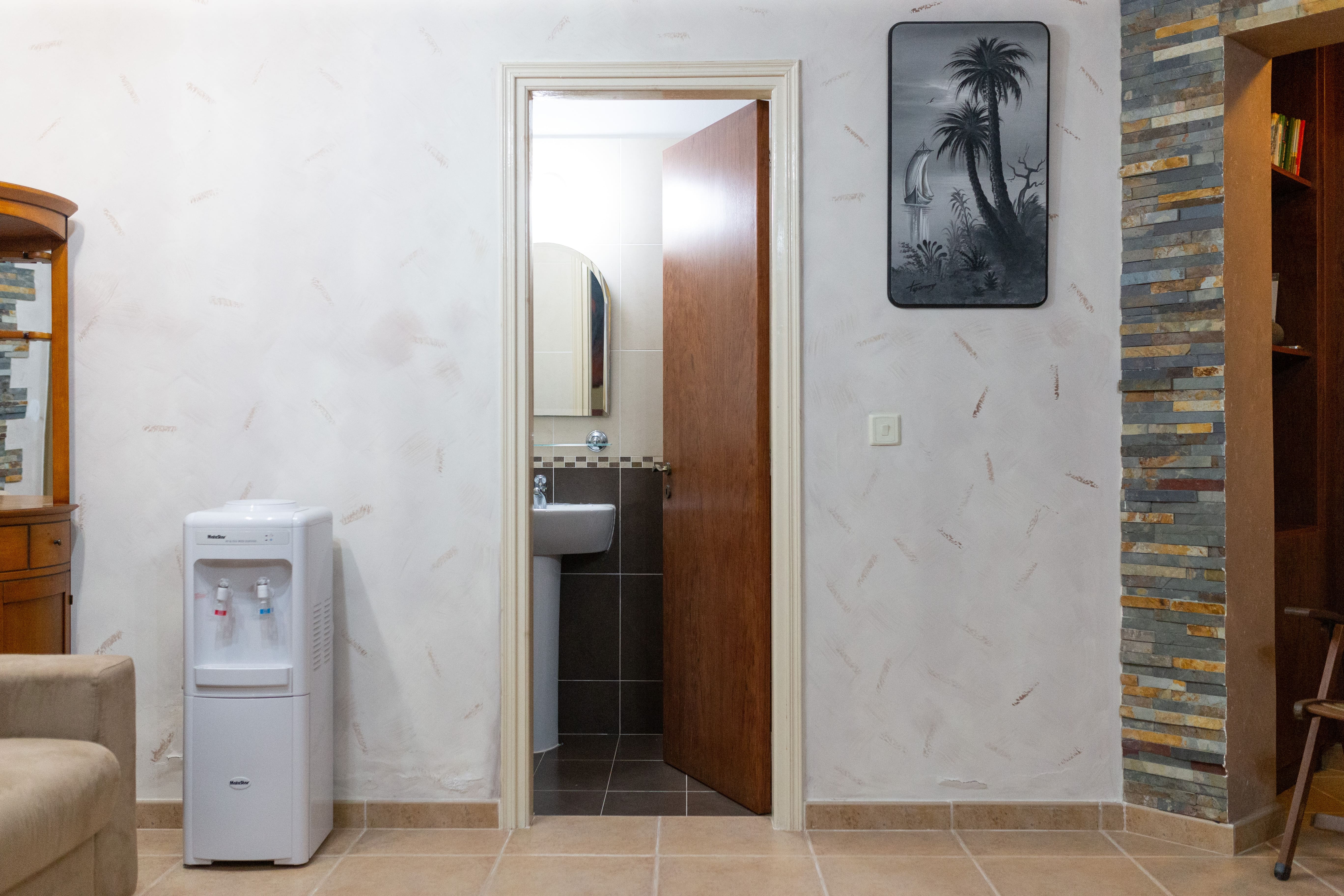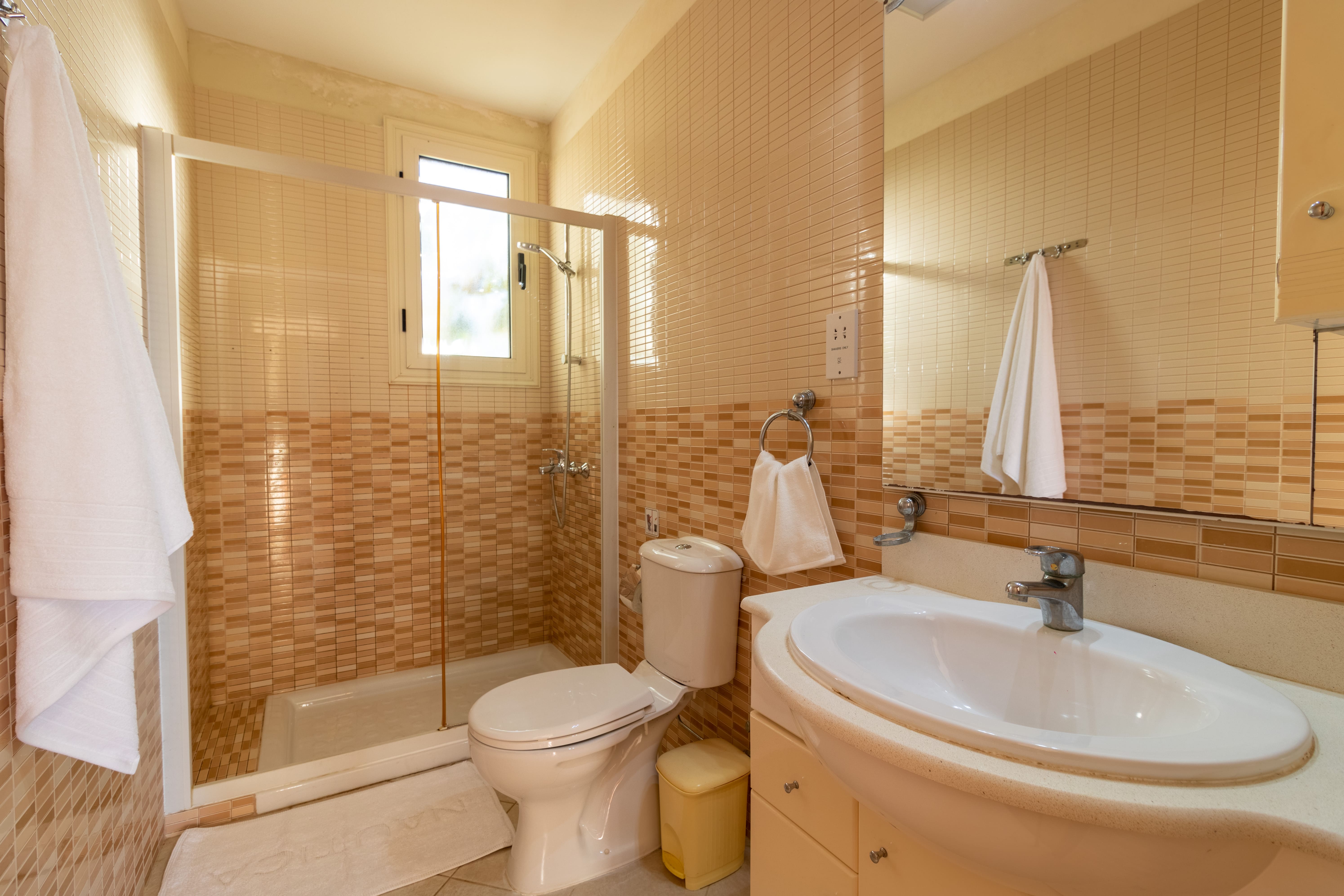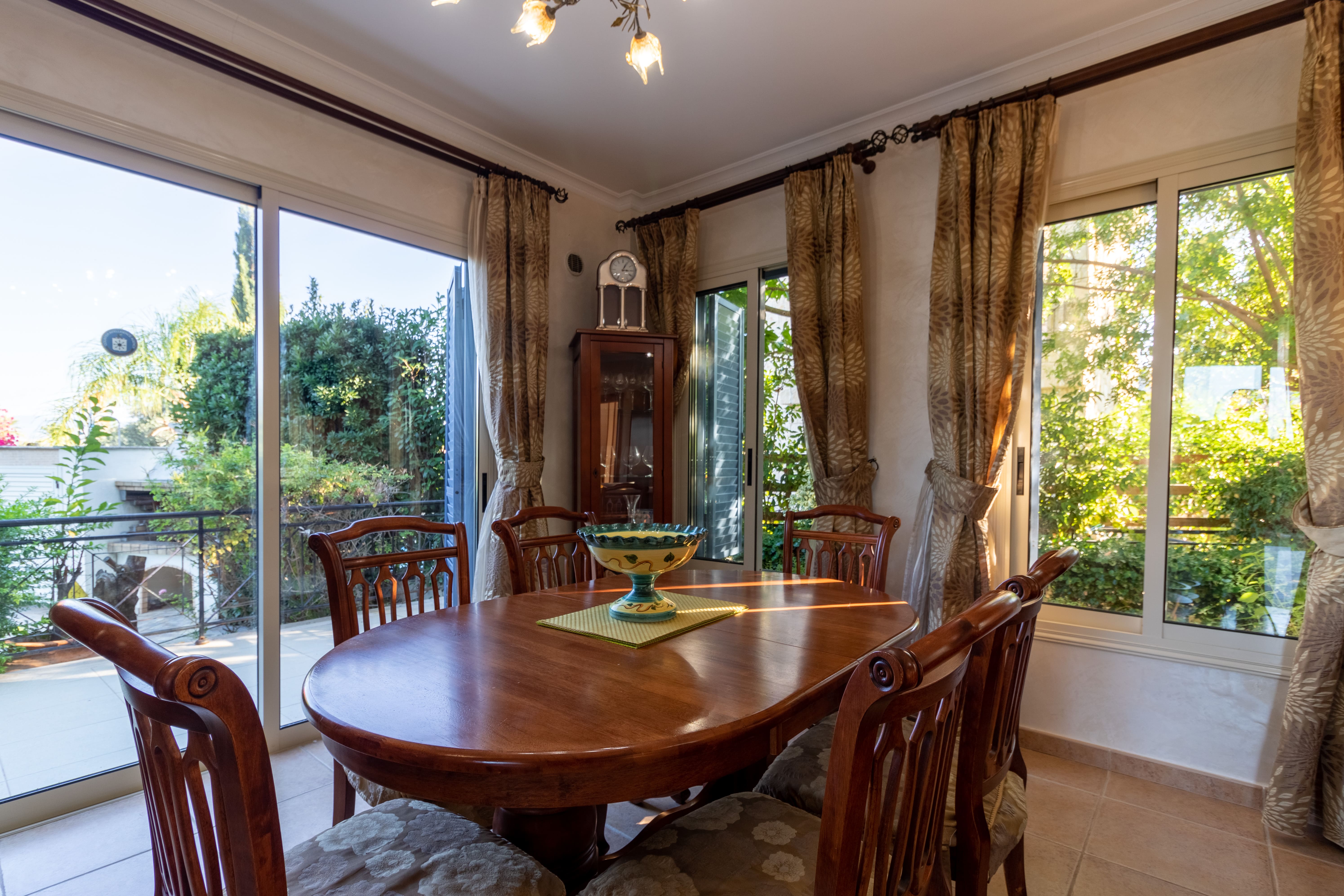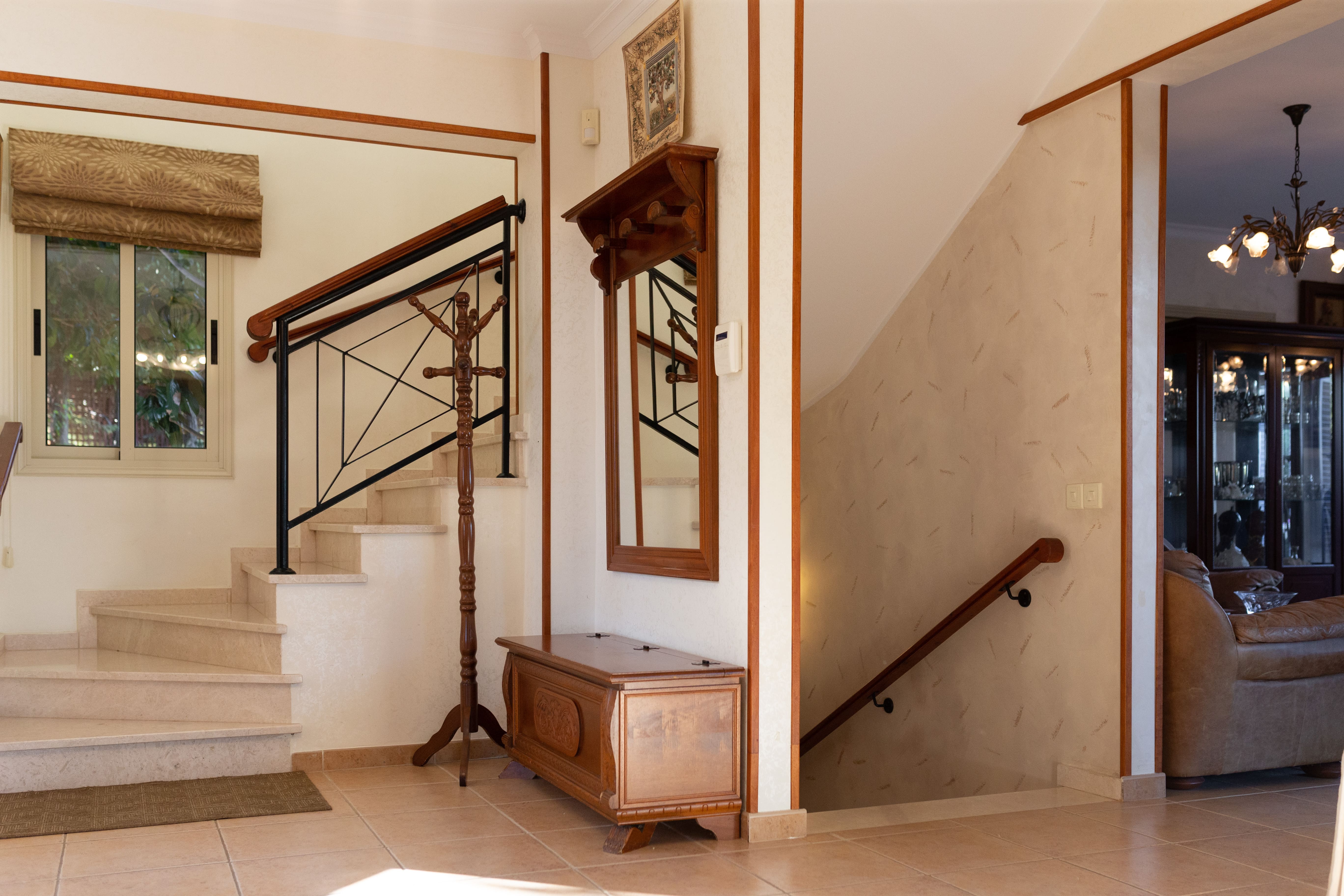 4 bedrooms, 5 bathrooms, a living room with a kitchen, a hall, a billiard room and a green well-groomed garden with a pool heated in winter. The beach and the nearest fish tavern are 3 minutes walk. A 3-minute drive away is the baths of Aphrodite, where tourists come to admire the eucalyptus branches hanging to the ground and the clear water of the goddess’ spring.