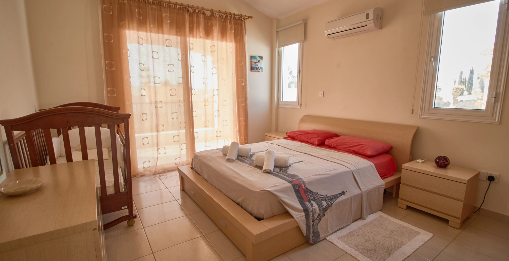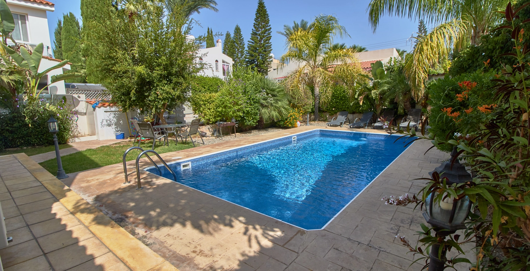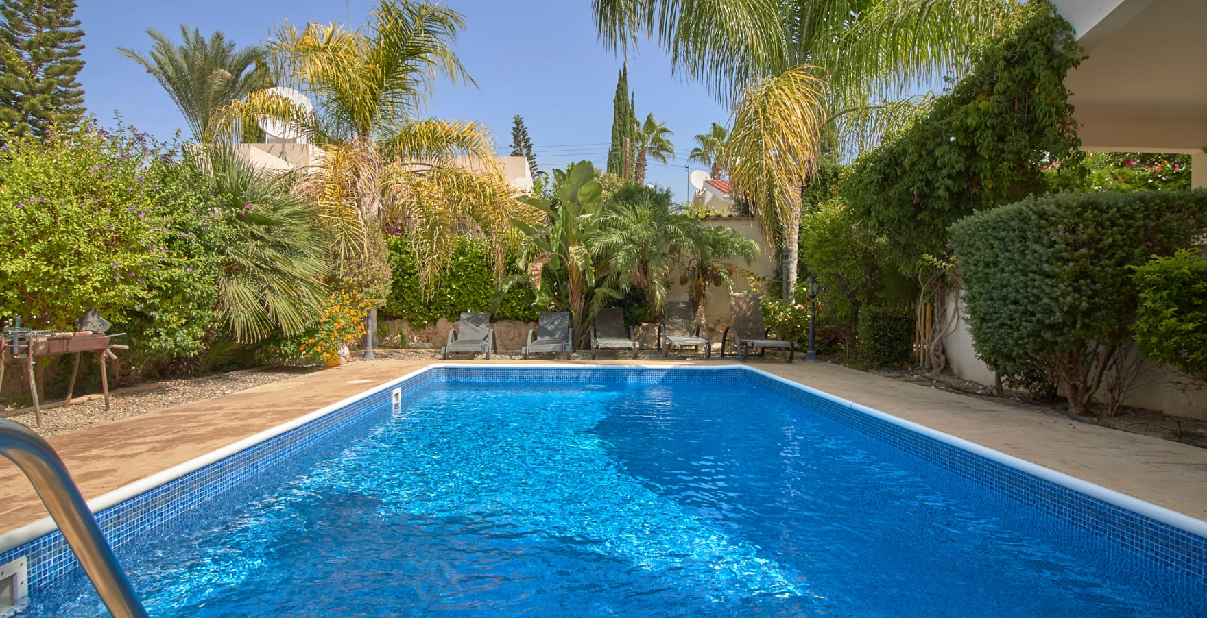 Located just a 5-minute walk from the pristine Corallia Beach, you’ll enjoy easy access to sun, sand, and sea. The villa is also conveniently close to the vibrant Coral Bay strip, where you’ll find a variety of bars, restaurants, and shops. Despite its proximity to these attractions, the villa is nestled within a quiet and peaceful complex.